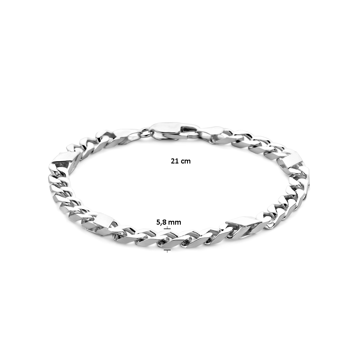 925 Zilveren armband met een schakelbreedte van 5.8mm. De armband heeft een draaglengte van 21cm. Uitgevoerd met een karabijn sluiting.