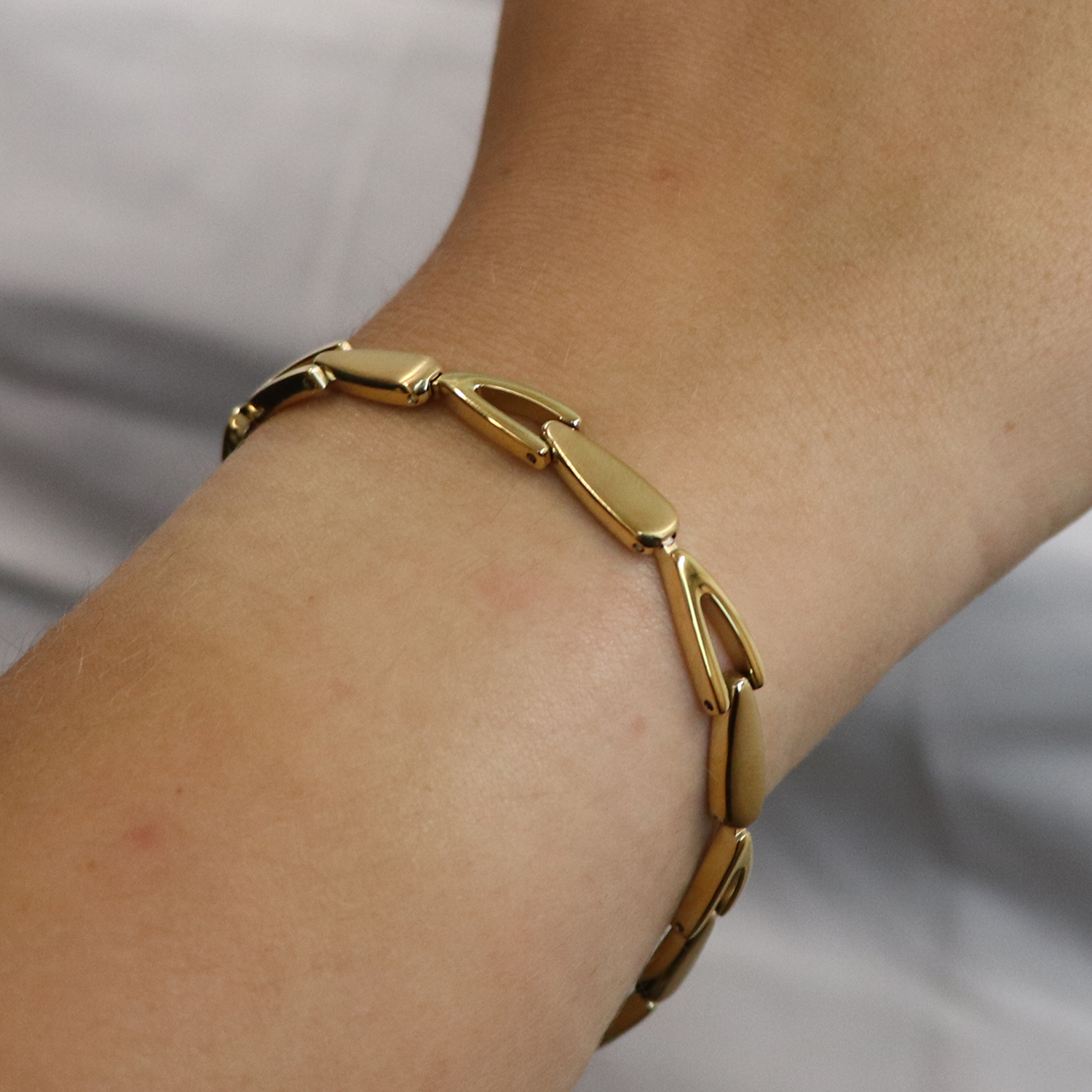 Deze prachtige damesarmband van Boccia Titanium is goudkleurig en deels gematteerd en deels glanzend. De armband is 20cm lang. Combineer de armband met andere sieraden van Boccia Titanium voor een complete look.
