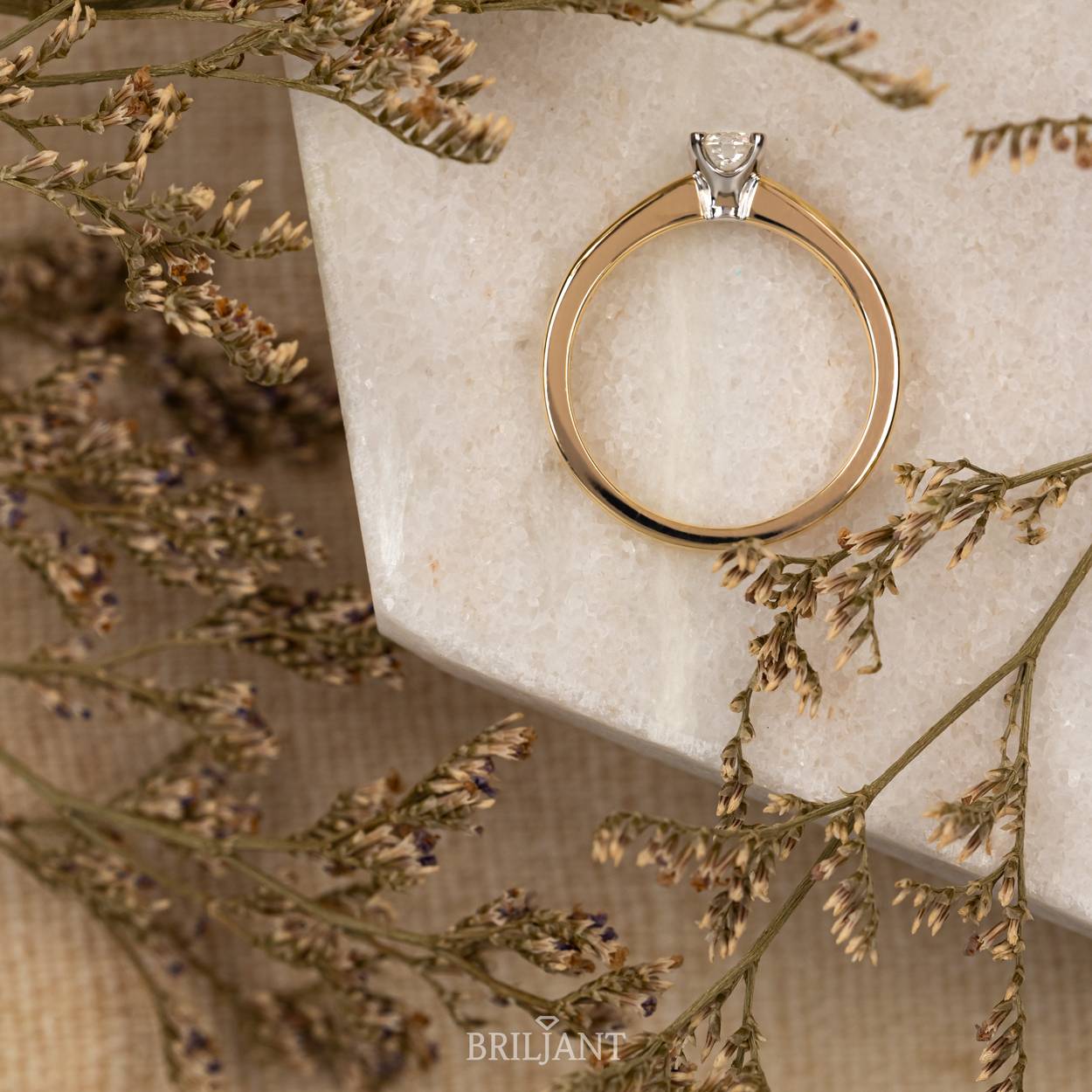 gouden ring met briljant, Quattro 0.12ct mt17,5
