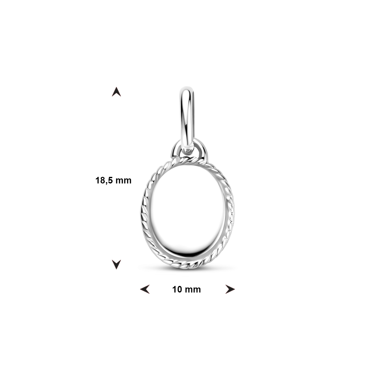 Gerhodineerd 925 zilveren graveerhanger uitgevoerd in de vorm van een ovaal. De dikte van de plaat is ongeveer 1.5mm.