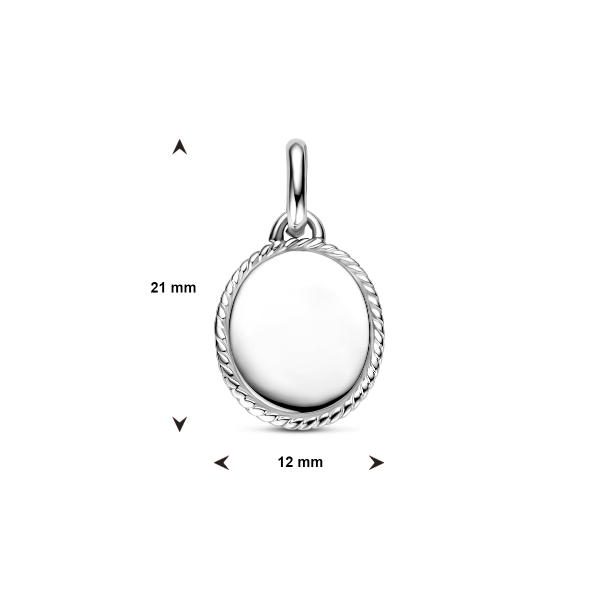 Gerhodineerd 925 zilveren graveerhanger uitgevoerd in de vorm van een ovaal. De dikte van de plaat is ongeveer 1.5mm.