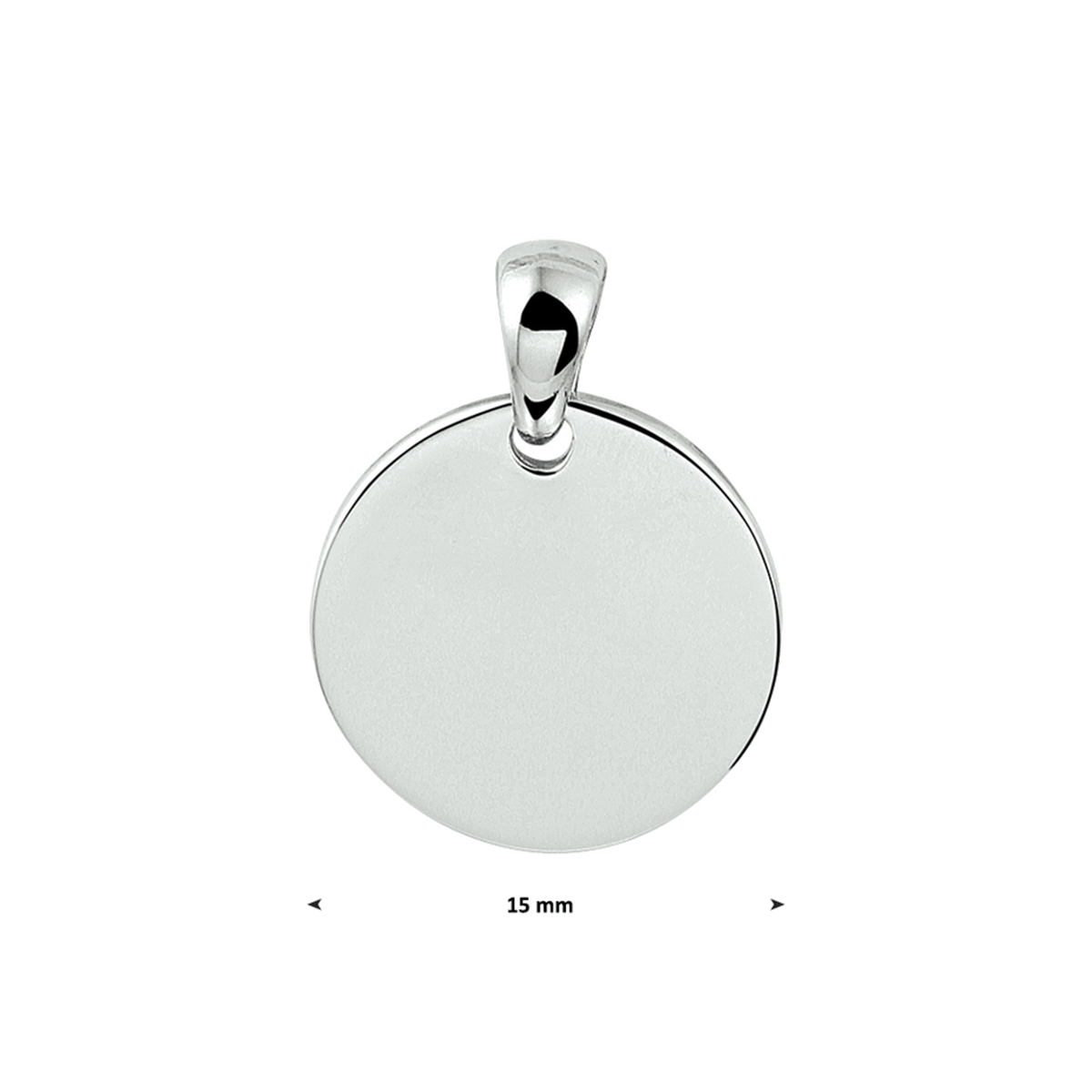 Beschrijving: Klassiek gerhodineerd zilveren ronde graveerhanger met een diameter van 15mm uitgevoerd met een stevig hangoog. Tip: Combineer deze graveerhanger met een collier uit onze collectie! Info: Gerhodineerd zilver is door de rhodiumlaag beter bestand tegen verkleuren en krassen.