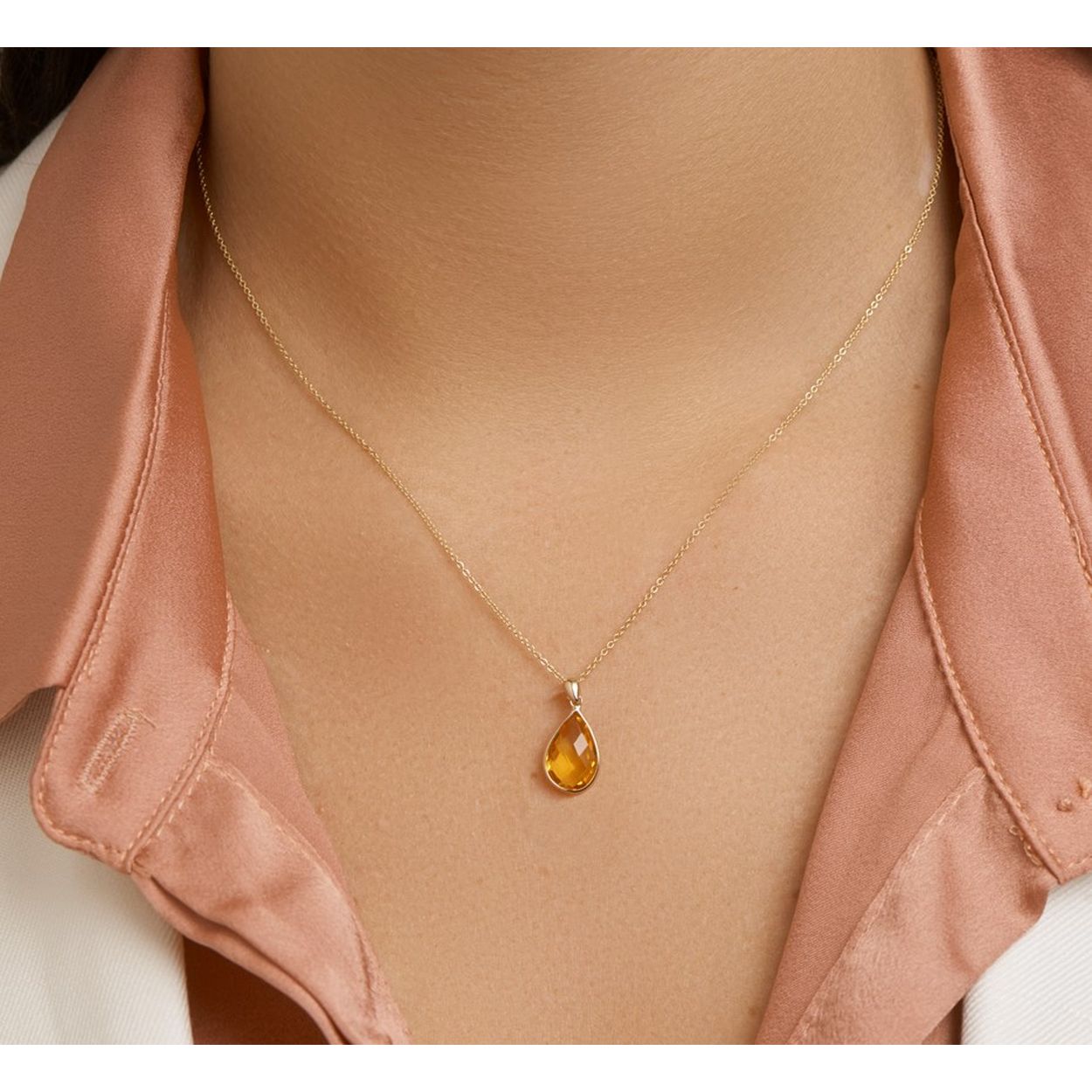 14k Geelgouden hanger uitgevoerd met een schitterende citrien. De hanger heeft een totale hoogte van 18mm.