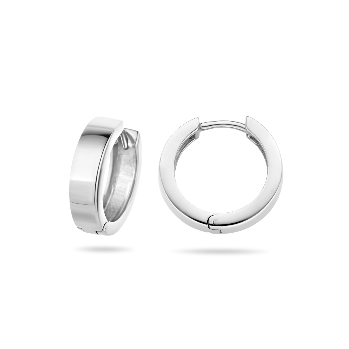 Beschrijving: Gerhodineerd zilveren klapcreolen met een vlakke buis en een poli afwerking.
