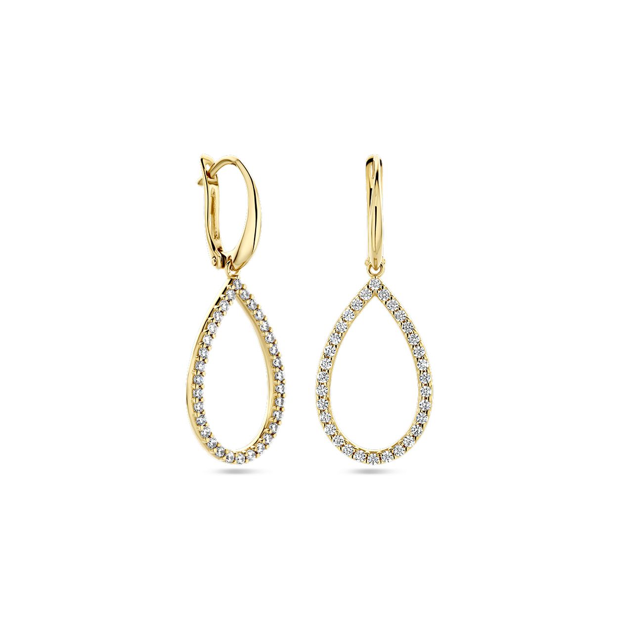 14k Geelgouden klapoorringen met zirkonia. De oorringen hebben een totale hoogte van 33mm.