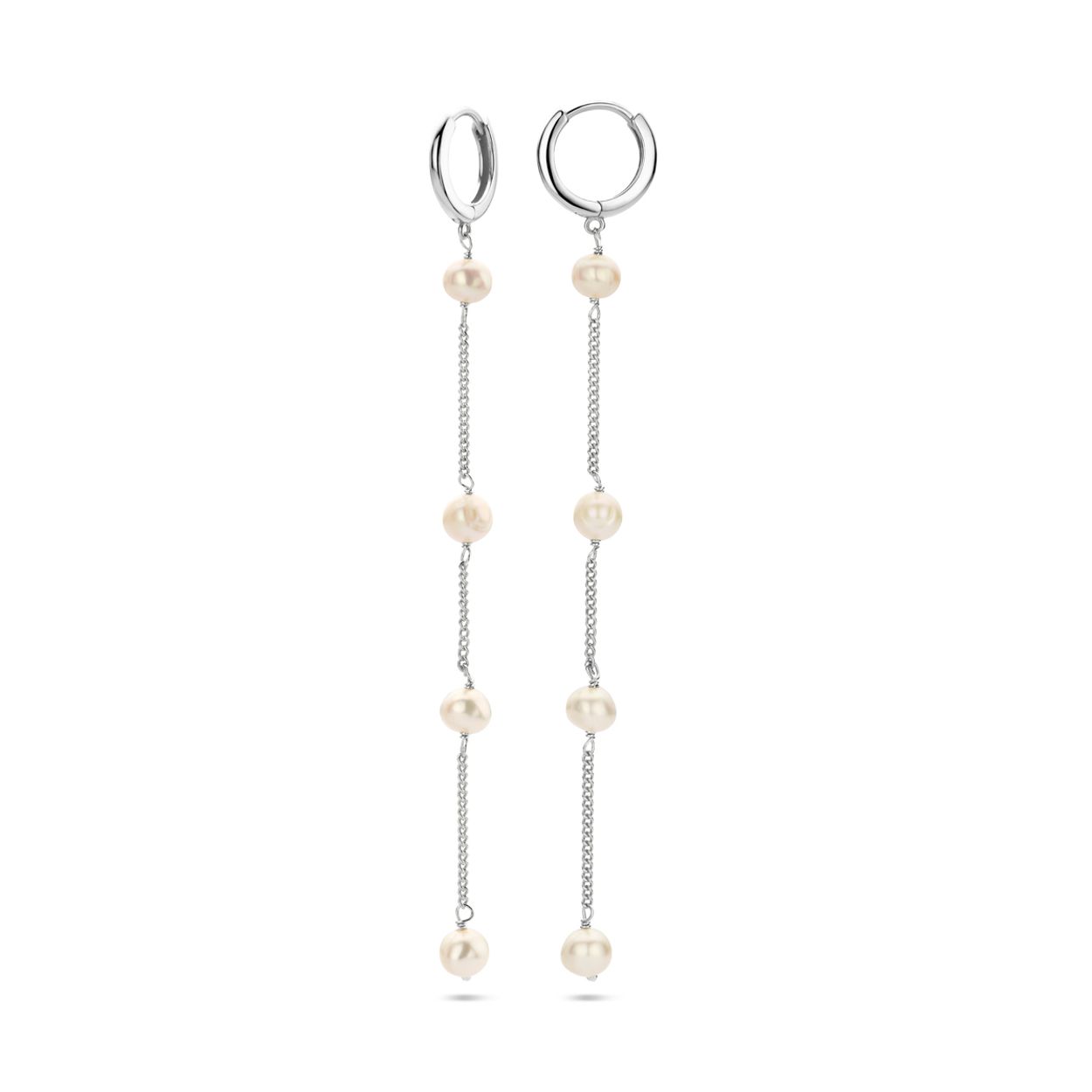 Gerhodineerd 925 zilveren klapoorringen uitgevoerd met zoetwaterparels. De klapoorringen hebben een totale hoogte van 80mm.