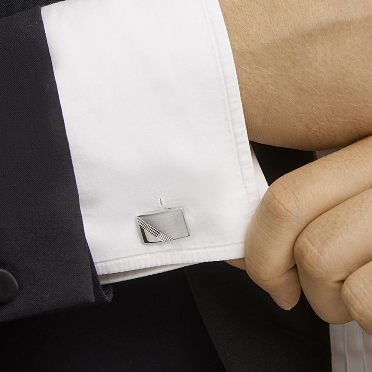 Beschrijving: Gerhodineerd zilveren manchetknopen met een poli/matte afwerking.