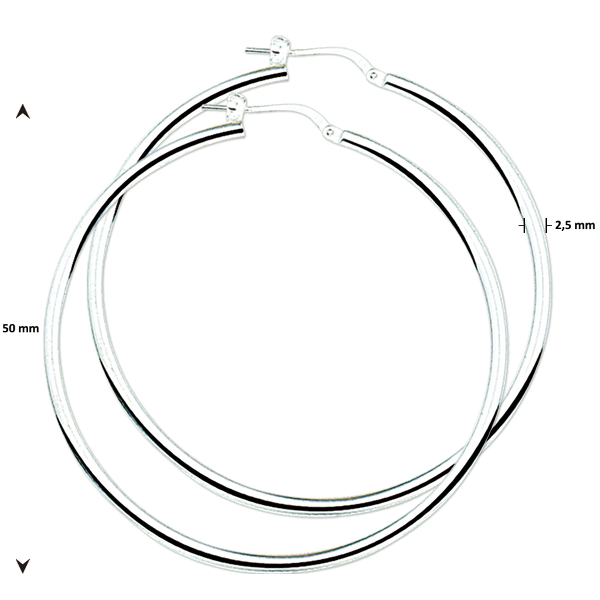 Beschrijving: Zilveren creolen met een ronde buis en een hefboom-sluiting.