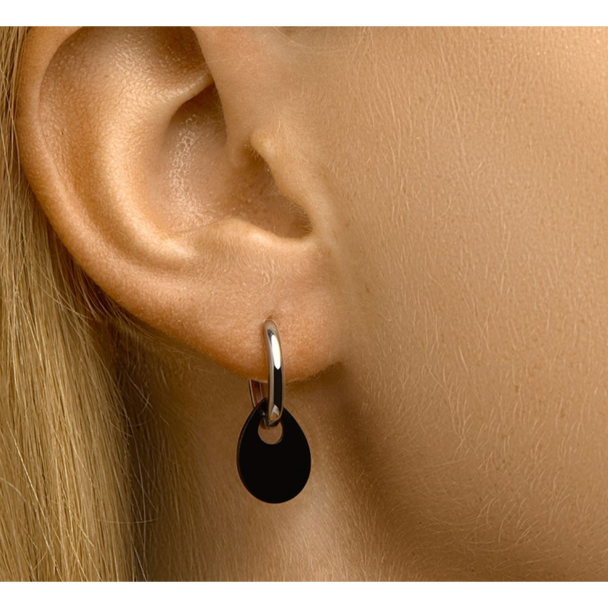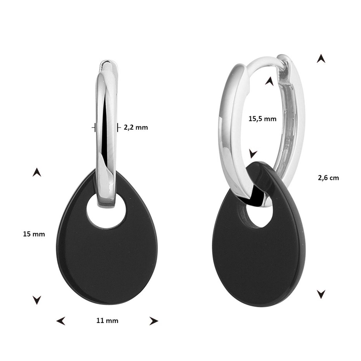 Gerhodineerd 925 zilveren oorringen uitgevoerd met een onyx hanger in druppelvorm. De oorringen hebben een totale hoogte van 2.6cm. De hanger heeft een afmeting van 15x11mm.