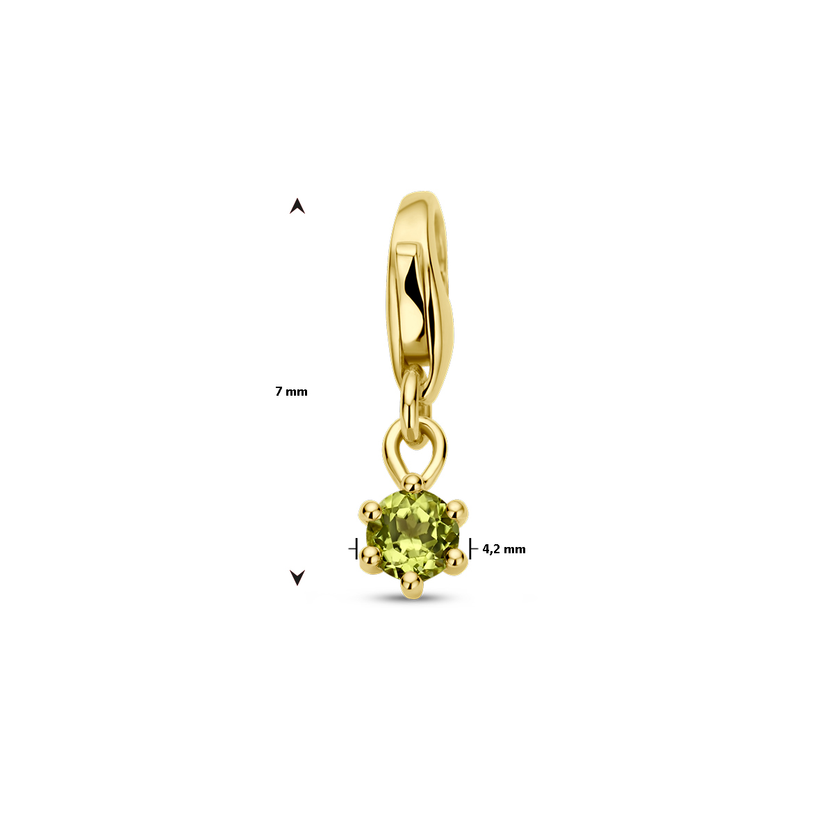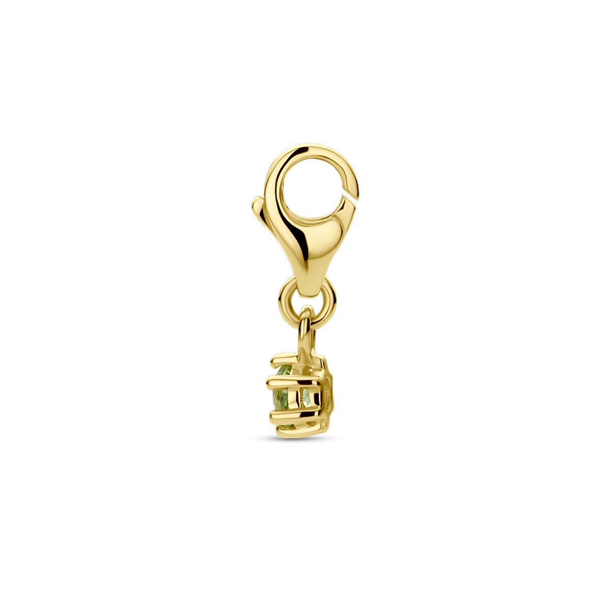 14k Geelgouden slotbedel uitgevoerd met een geboortesteen. De hanger heeft een totale hoogte van 15.5mm.